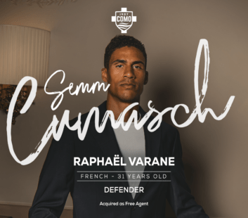Como 1907 Sign World Cup and Four Time Champions League Winner Raphaël Varane